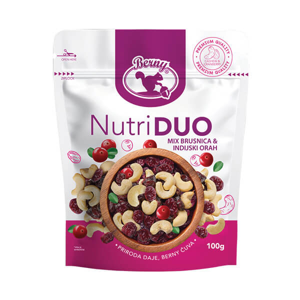 Nutri DUO, mix indijskog oraha i brusnice 100g Berny