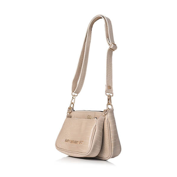 Mekana dupla torbica urbanog dizajna. Zatvara se na patent. Uz torbu dolazi podesivi remen, podesiv od nošenja na ramenu do nošenja preko tijela te kraći lanac.