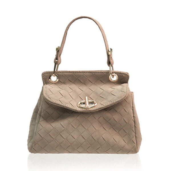 Elegantna torba blago trapezastog oblika vrećaste forme s ručkicom i efektnom kopčom.
