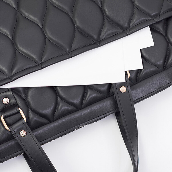 Unutrašnjost krije veću pregradu za papire, pregradu za punjače ili manje stvari te tri dodatna džepića za mobitel, USB i sitnije stvari. Kraće ručke za nošenje u ruci te dugi remen koji se može skinuti za nošenje na ramenu.