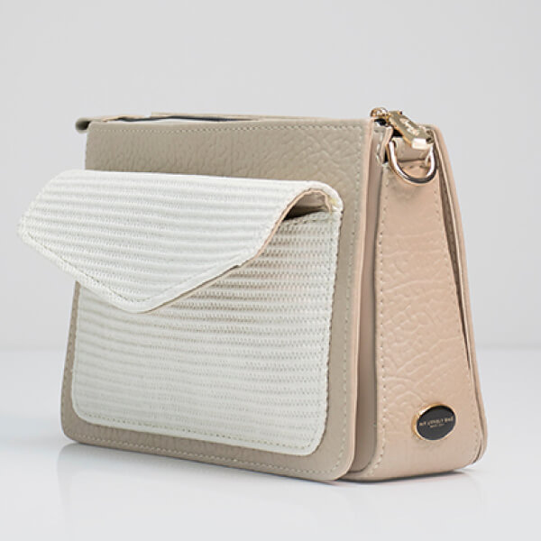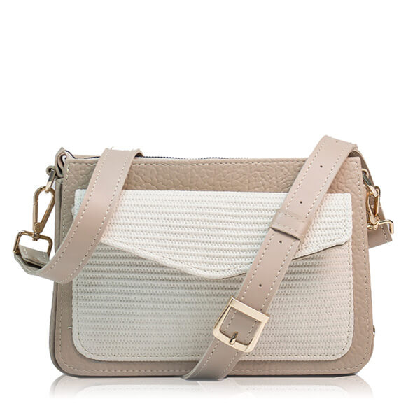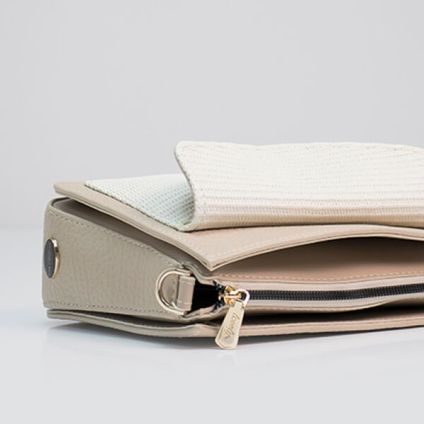 Strukturirana torba s džepom i tri pregrade. Elegantna i suvremena torba koja spaja nježne neutralne tonove s čistim, arhitektonskim linijama. Dizajnirana za žene koje vole minimalizam s dozom karaktera, ova torba se ističe kombinacijom tekstura i suptilnim kontrastom bež nijansi.