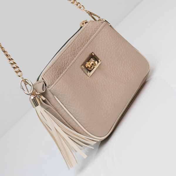 Uz torbu dolazi remen kombiniran s lancem te širi tekstilni remen, što pruža prilagođavanje različitim prilikama i stilovima nošenja. Dodatni privjesak u formi resica daje dozu razigranosti i ženstvenosti.