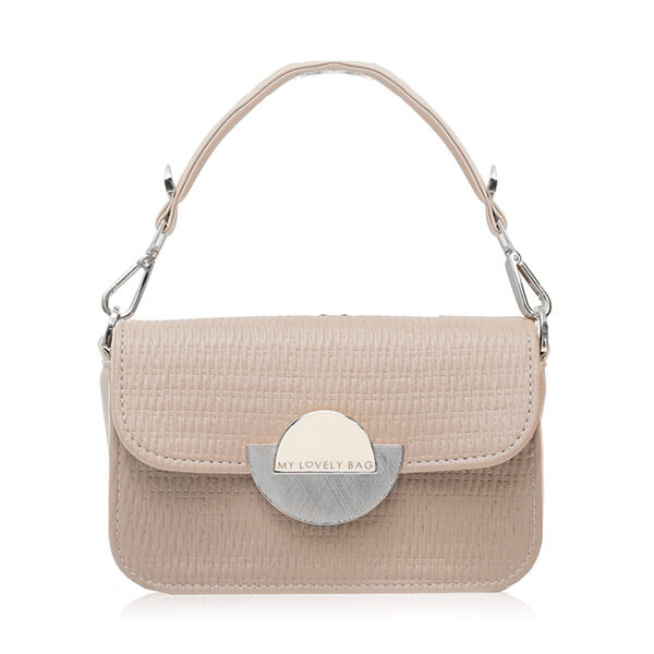 Mini torbica elegantnog dizajna, kruće forme, s unikatnom kopčom. Na torbici je elegantna ručkica koju je moguće skidati. Uz torbu dolazi i dugi remen.