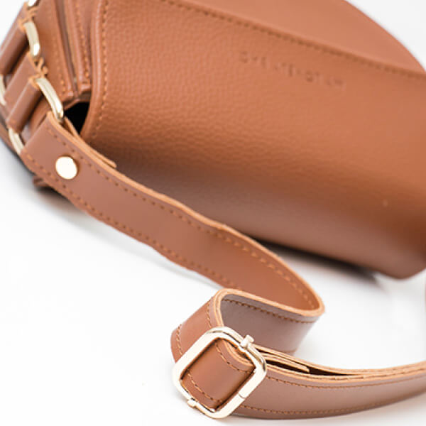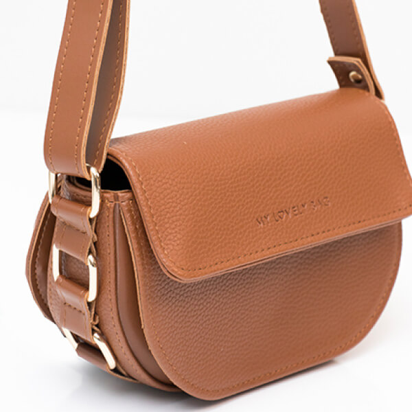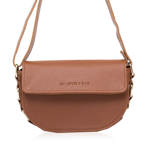 Torbica manjih dimenzija i neobičnog, blago zaobljenog oblika. Krasi je suptilni utisnuti My Lovely Bag natpis na poklopcu te zlatne karike na bočnim stranama.