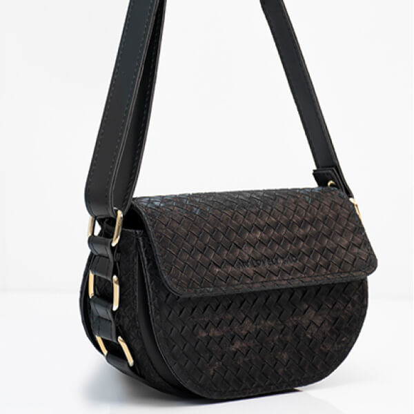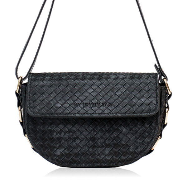 Torbica manjih dimenzija i neobičnog, blago zaobljenog oblika. Krasi je suptilni utisnuti My Lovely Bag natpis na poklopcu te zlatne karike na bočnim stranama.