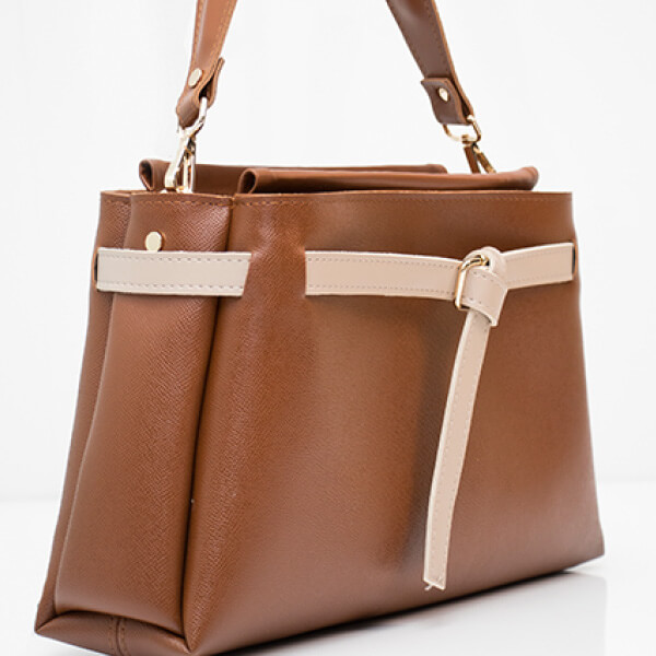 Elegantna torba poslovnog karaktera, blago trapezasta i minimalističkog dizajna s ukrasnim remenom.