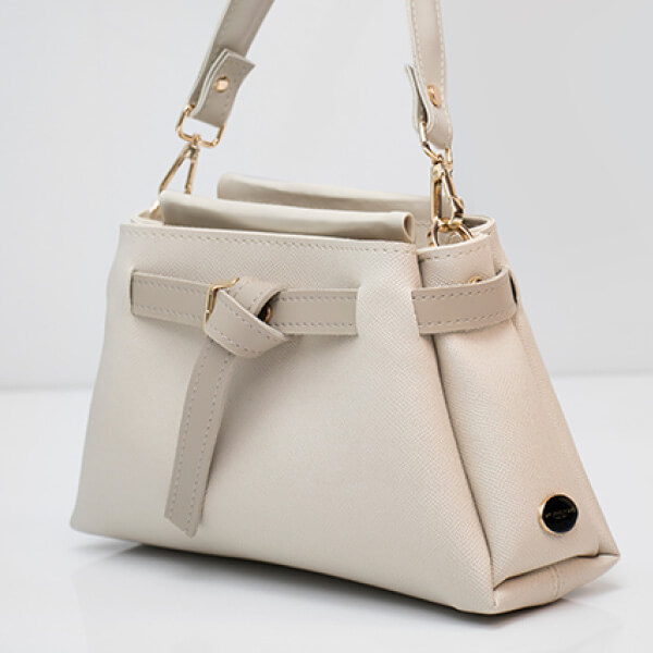 Blago trapezasta torba minimalističkog dizajna sastavljena od tri praktične pregrade. Ima ručkicu za nošenje u ruci te dugi podesivi remen za nošenje preko tijela ili na ramenu.