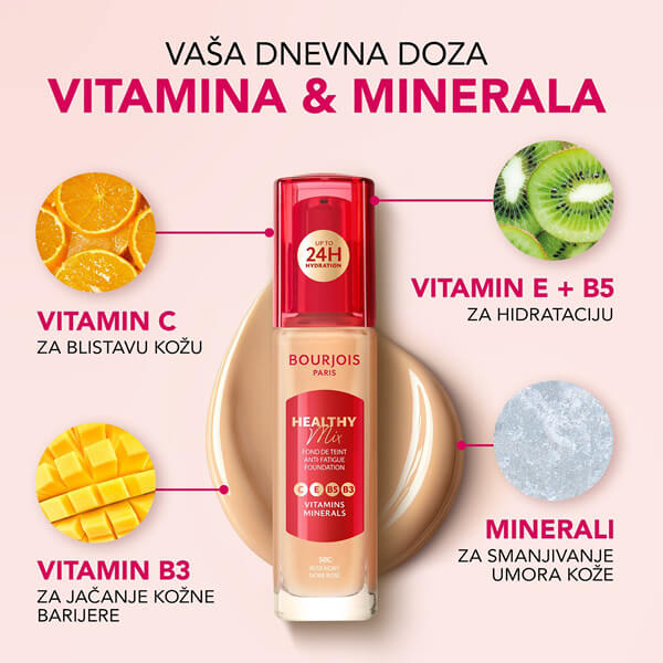 Healthy Mix Anti-Fatigue tekući puder pruža prirodno, ujednačeno prekrivanje i svjež, zdrav izgled kože.