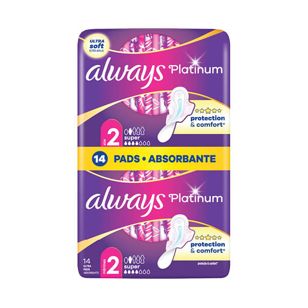 Tražite li beskompromisan spoj udobnosti i zaštite, odaberite higijenske uloške Always Platinum. Njihova dvoslojna površina s 1000 mikrojastučića i svilenkasto mekana krilca jamče da nećete ni osjećati da ih nosite, a tehnologija neutralizacije neugodnih mirisa pobrinut će se za dugotrajnu svježinu. Moćna upijajuća jezgra i inovativna bočna zaštita sprečavaju propuštanje, pa su ovi ulošci u svakom pogledu Alwaysov br. 1 za zaštitu i udobnost. Always Platinum Super (veličina 2) s krilcima preporučuje se za dnevnu upotrebu i srednje obilnu mjesečnicu, a za pouzdanu nježnu noćnu zaštitu isprobajte Always Platinum Night.