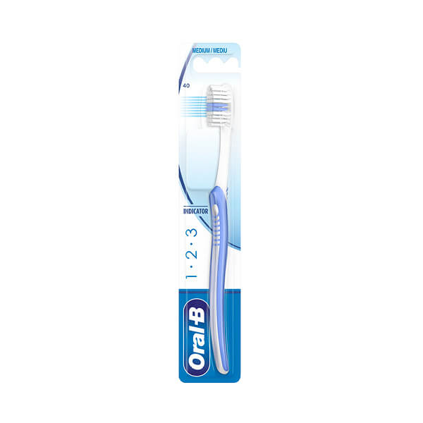 Oral-B Indicator 1-2-3 četkica za zube, zahvaljujući specijalno dizajniranim vlaknima pruža temeljno čišćenje zuba. Posebno oblikovana vlakna četkice za zube dopire do teško dostupnih međuzubnih prostora i sprječavaju nastanak naslaga i karijesa. Inovativna plava vlakna vremenom blijede kako bi vas obavijestili kada je vrijeme da promijenite četkicu. Oral B Indicator 1-2-3 četkica za zube – za savršenu zubnu njegu