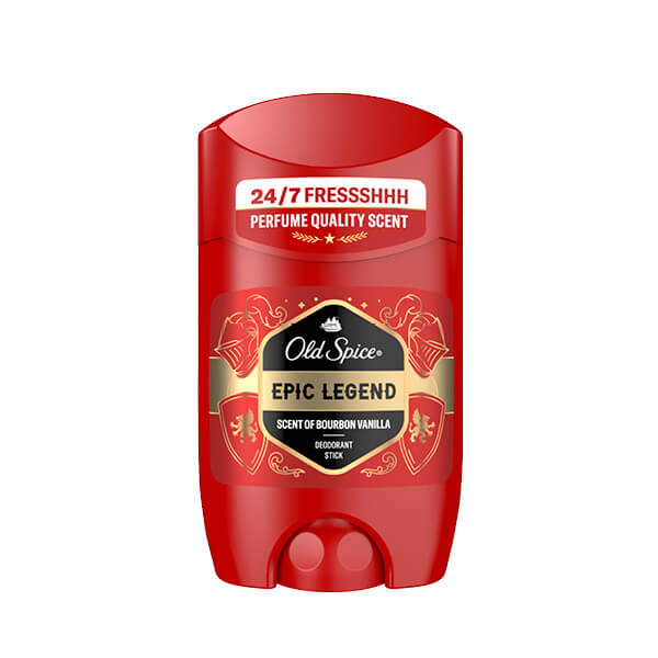 Uživajte u svježini i samopouzdanju 24 sata dnevno uz Old Spice's Epic Legend Solid dezodorans u stiku. Trostruka zaštitna formula pruža dugotrajan miris, pouzdanu zaštitu od neugodnih mirisa. Aroma burbon vanilije, dimljenog hrasta i toplog jantara. Ne sadrži aluminijeve soli i nevidljiv je na crnoj i bijeloj odjeći.