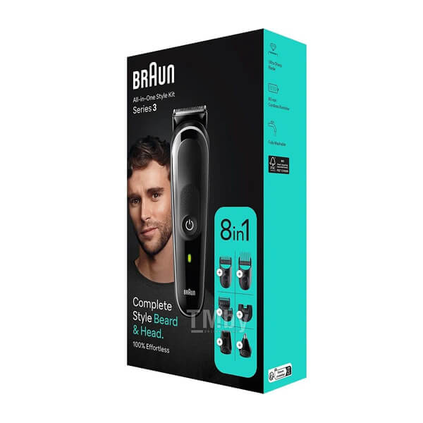 Braun 8-u-1 Style Kit dolazi s moćnom Ni-MH baterijom koja omogućava do 80 minuta rada bez kabla.