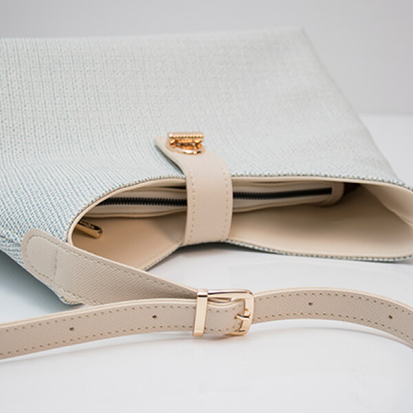 Elegantna ženska torba modernog dizajna i minimalističke forme s jednim glavnim pretincem koji pruža dovoljno prostora za svakodnevne potrepštine. Dodatni unutarnji džep sa zatvaračem i podesivi remen doprinose funkcionalnosti ove torbe koja je savršen izbor od poslovnih kombinacija do opuštenih dnevnih izlazaka.