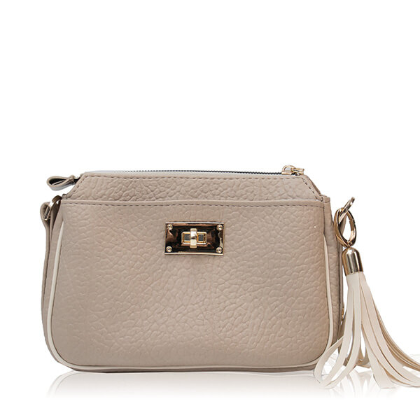 Uz torbu dolazi remen kombiniran s lancem te širi tekstilni remen, što pruža prilagođavanje različitim prilikama i stilovima nošenja. Dodatni privjesak u formi resica daje dozu razigranosti i ženstvenosti.