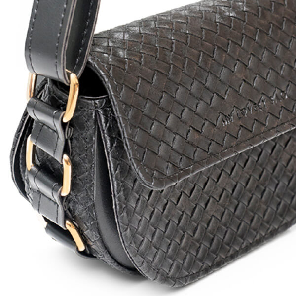 Torbica manjih dimenzija i neobičnog, blago zaobljenog oblika. Krasi je suptilni utisnuti My Lovely Bag natpis na poklopcu te zlatne karike na bočnim stranama.