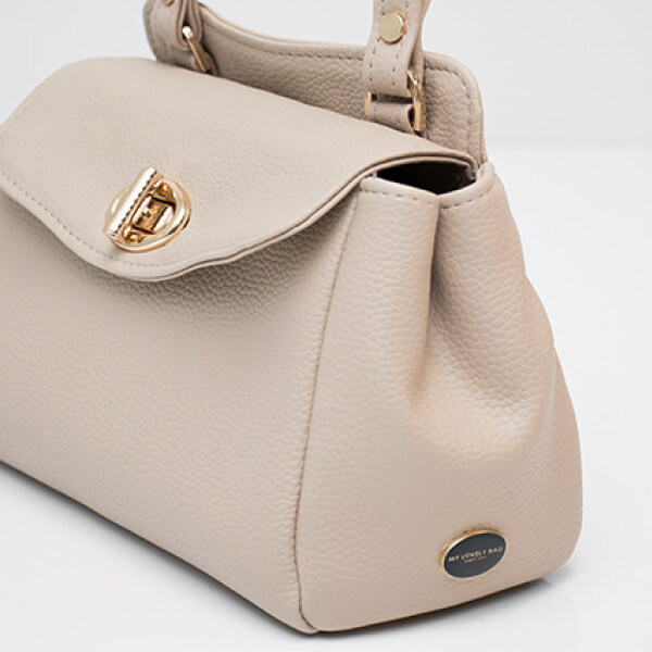Elegantna torba blago trapezastog oblika vrećaste forme s ručkicom i efektnom kopčom.