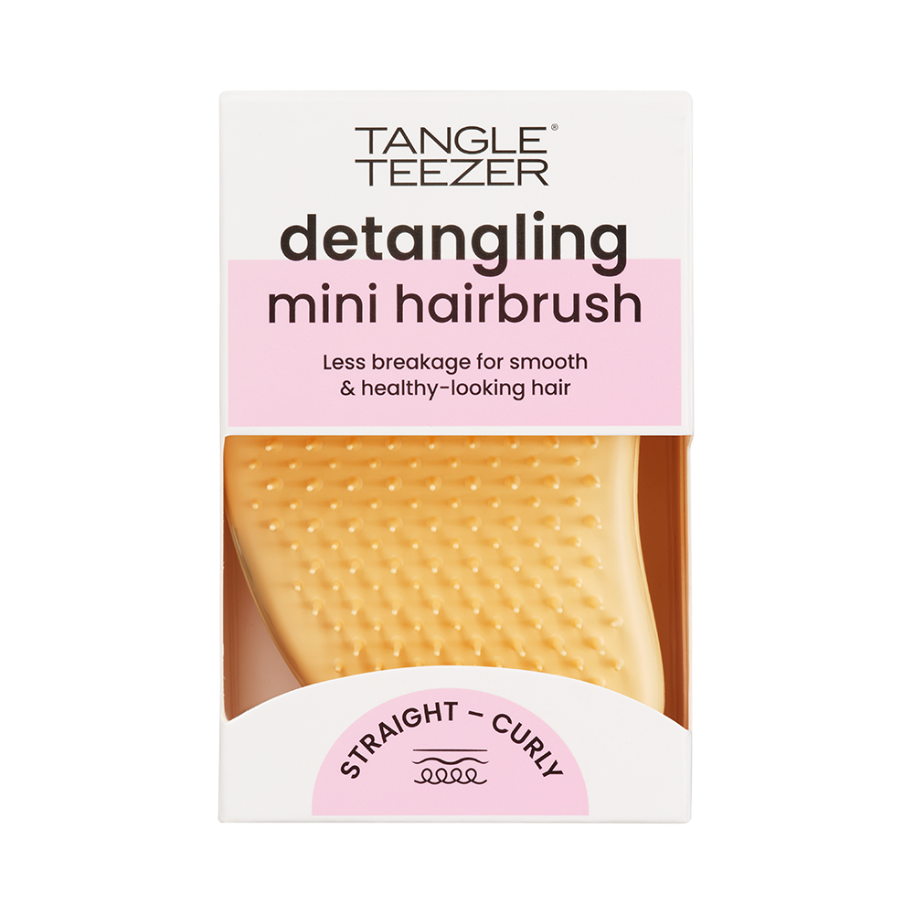 Tangle Teezer Original Mini četka za kosu je višenamjenska četka za kosu i pogodna je za sve tipove kose. Četka nježno raspetljava kosu bez čupanja ili lomljenja vrhova. Čini kosu sjajnom i glatkom, a može se koristiti na suhoj ili mokroj kosi. Dugi, mekani zupci jednostavno klize kroz kosu bez čupanja i lomljenja. Praktičan dizajn četke jednostavno leži u ruci i pogodna je kao dodatak za putovanja.