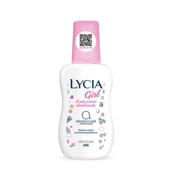 Dermatološki testirano pod pedijatrijskim nadzorom.Lycia gril je prvi dezedorans posebno formuliran za učinkovitu borbu protiv neugodnog mirisa uzrokovanog prvim znojenjem djevojčica i mladi žena ,a istovremeno njeguje najosjetljiviju kožu. Njegova nježna formula ne sadrži alkohol i aluminijeve soli te je obogaćena posebnim aktivnim sastojkom koji osigurava do 48 sati djelovanja protiv neugodnih mirisa.