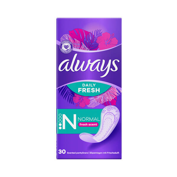 Always Dailies Dnevni ulošci Normal Fresh & Protect sa svježim mirisom pružaju diskretnu zaštitu i dugotrajnu svježinu. Dizajnirani su s novom formom za veću udobnost i prilagodljivost, a debljina manja od 2 mm omogućava neprimjetno nošenje. Meka površina osigurava ugodan osjećaj na koži. Paket sadrži 30 uložaka, pogodnih za svakodnevnu upotrebu.