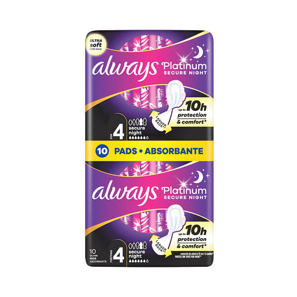 Za vrhunsku kombinaciju pouzdane noćne zaštite i udobnosti, odaberite higijenske uloške Always Platinum Long Secure Night. Njihov 60% veći zadnji dio nego kod veličine 1 u kombinaciji s dvoslojnom površinom s 1000 mikrojastučića i svilenkasto mekanim krilcima jamče miran san, a tehnologija neutralizacije neugodnih mirisa pobrinut će se za dugotrajnu svježinu. Moćna upijajuća jezgra i inovativna bočna zaštita sprečavaju propuštanje, pa su ovi ulošci u svakom pogledu Alwaysov br. 1 za zaštitu i udobnost. Ovi su ulošci prikladni za noći i dane s izuzetno obilnom mjesečnicom, a za one s umjereno obilnom preporučujemo Always Platinum Super (veličina 2).