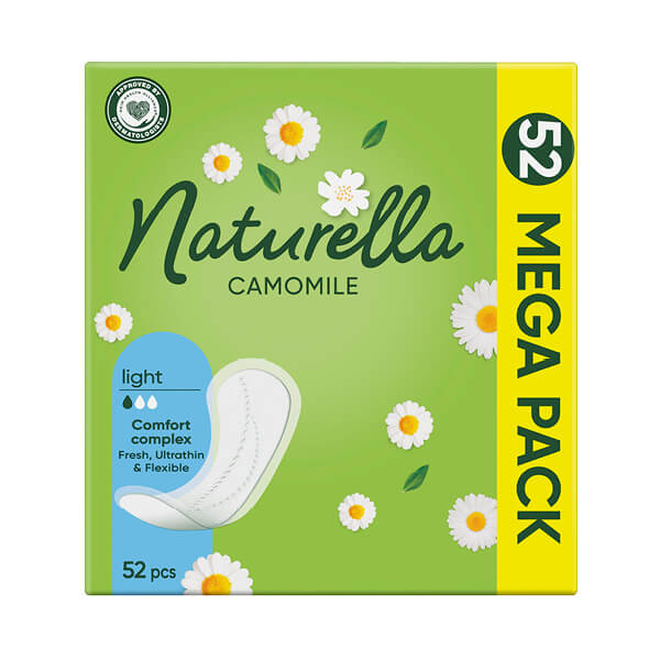 Uživajte u ugodnom osjećaju svježine tokom cijelog dana sa Naturella Camomile normal dnevnim ulošcima. Zahvaljujući izuzetno mekanom površinskom sloju nježni su u dodiru sa kožom i udobni za nošenje. Pružaju pouzdanu zaštitu od vaginalnog sekreta, mjesečnice i iscjetka prije i poslije mjesečnice. Naturella Camomile normal dnevni ulošci tanki su svega 0,9 mm i zbog toga ih ne osjećate tokom dana. Koračajte sigurno kroz dan uz Naturella Camomile dnevne uloške!