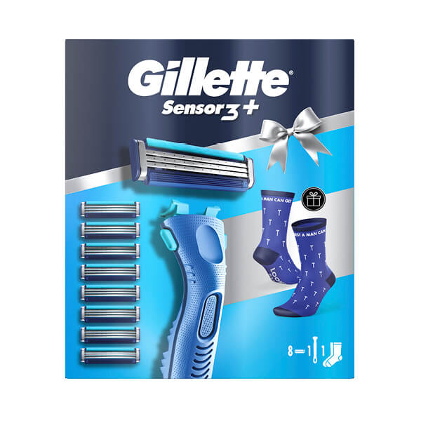 Poklon paket Gillette Sensor 3+ savršen je izbor za muškarce koji žele precizno i udobno brijanje. Paket sadrži brijač sa ergonomskom drškom i 8 rezervnih oštrica, koje omogućavaju glatko i temeljno brijanje. Kao dodatak, u paketu se nalaze i čarape sa stilskim dizajnom i porukom "The Best A Man Can Get", što ga idealnom poklonom idejom.